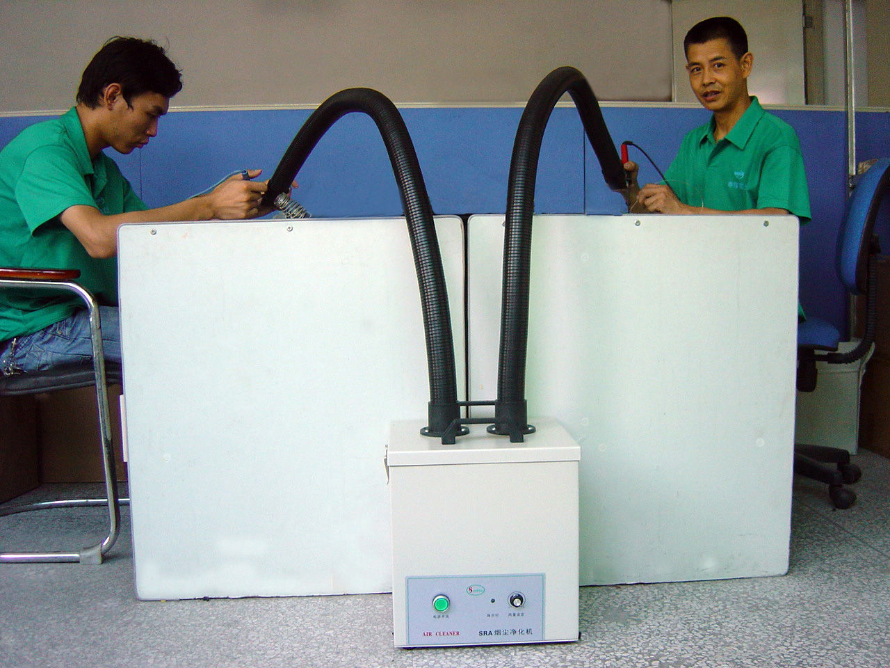 2.雙工位焊錫煙霧凈化機,適用于產線焊錫,體積小,移動方便。