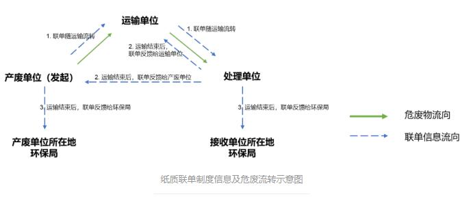 隨著我國(guó)工業(yè)化和城市經(jīng)濟(jì)的高速發(fā)展,工業(yè)廢物、生活廢物以及醫(yī)療廢物的產(chǎn)生量急劇增加,其中對(duì)人體健康、土壤、水體等危害更大的危險(xiǎn)廢物也大大增加,整個(gè)2018年的危廢產(chǎn)量達(dá)到7500萬(wàn)噸,與2011年相比翻了一番。如果危險(xiǎn)廢物處理不當(dāng),則會(huì)對(duì)環(huán)境以及人類造成巨大危害,甚至導(dǎo)致疾病和死亡。如何能更加有效、環(huán)保、徹底處理或穩(wěn)定化這些危險(xiǎn)廢物,成為當(dāng)今世界關(guān)注的重大問(wèn)題。 在過(guò)去的一年里,生態(tài)環(huán)境部新增了包括固體廢物與化學(xué)品司,危險(xiǎn)廢物也在固體廢物與化學(xué)品司管理范圍內(nèi)。緊隨其后的是“清廢行動(dòng)2018”轟轟烈烈拉開架勢(shì),加強(qiáng)了對(duì)固廢以及危廢產(chǎn)生企業(yè)的監(jiān)管和督查,大量被查出來(lái)的固廢危廢將進(jìn)入正規(guī)處置渠道。在長(zhǎng)江經(jīng)濟(jì)帶沿岸地區(qū),工信部也對(duì)工業(yè)固廢展開大排查。同時(shí),新版《環(huán)境保護(hù)稅法》頒布,山東、四川、廣東等省危廢相關(guān)細(xì)則紛紛落地,對(duì)于違反相關(guān)法律的行為也都遵從“從重處罰”的原則。 目前傳統(tǒng)的對(duì)危險(xiǎn)廢物轉(zhuǎn)移過(guò)程的監(jiān)管主要實(shí)行的是“紙質(zhì)聯(lián)單制度”,即轉(zhuǎn)移過(guò)程中的關(guān)鍵信息和數(shù)據(jù)由參與方記錄在聯(lián)單上,最后寄給相關(guān)的政府環(huán)保部門進(jìn)行監(jiān)管(如下圖所示)。此種制度存在流轉(zhuǎn)效率低,數(shù)據(jù)準(zhǔn)確性不可控,聯(lián)單的保存與管理成本高等問(wèn)題。